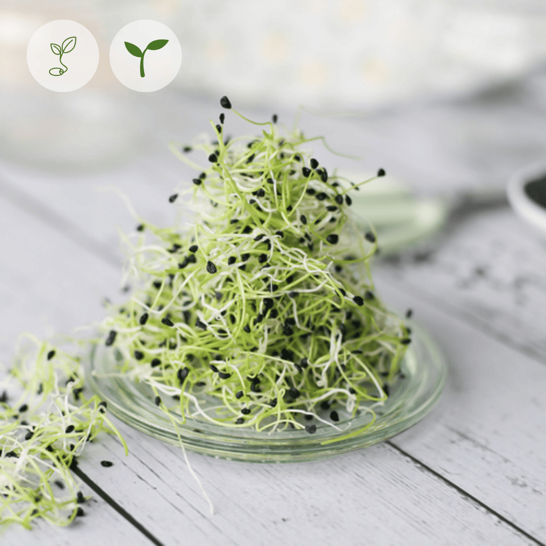 Mugullaugu seemned maitsevad küüslauguselt. Oma efektse välimusega on pilgupüüdjaks taldikul.