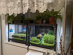Kohe hakati idandamise grupis arutama lisavalgusest ja milline on parim taimelamp. Õnneks mul abikaasa elektroonikahuviline ning saab võõrkeelsetest lehtedest kenasti aru, mis, kes, kus midagi pakub ja mis ta väärt on. Tellimus tehtud ja ootel. Kuna käes oli juba ettekasvatuse hooaeg ning hakkas tekkima aknalaudade puudus, siis ladusin lisaruumi saamiseks aknalauad täis Bauhofist leitud garaaziriiuleid, mis mõõtudelt sobitusid täpselt! Lambid sai mugavalt kleepida riiulite alla.