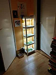 "Minu tõusmete kasvukoht on väikeses korteris, kus see on paigutatud magamistoa ja vannitoa vahele jääva väikese seinakese äärde. Riiuliks sai juba varem kodus olnud IKEA kitsas plastikriiul. Kuna tellitud sai neljane valgusti, siis võtsin teiselt samasuguselt riiulikomplektilt ühe riiuliosa juurde, et ka ülemisel lambil oleks kinnituskoht. Päris üles sai sedasi riiul külvialuste idanemise jaoks, kus hoian neid kaetult ilma lambita.