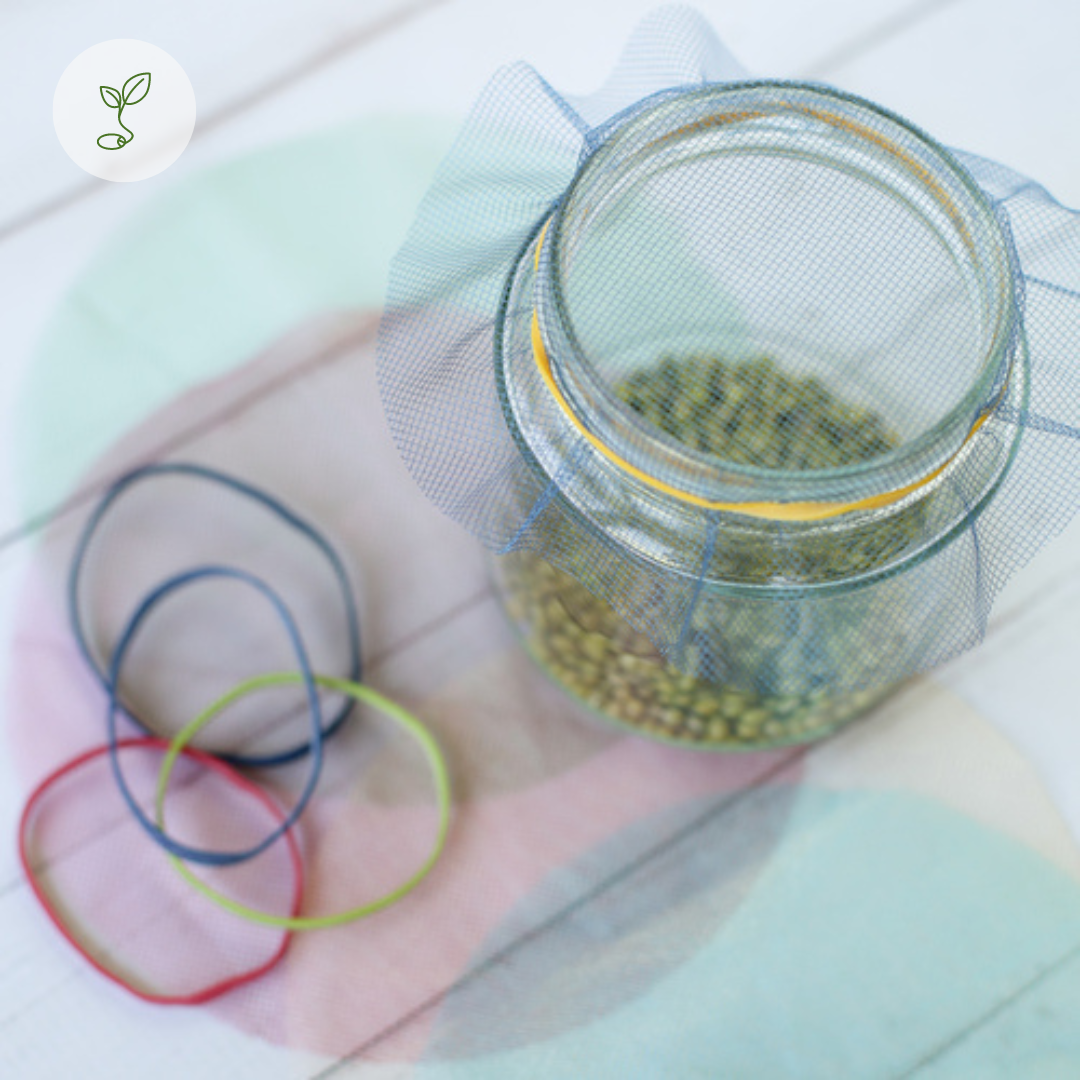 Lihtne ja värvikas võrkriiete komplekt purgimeetodil idandamiseks.