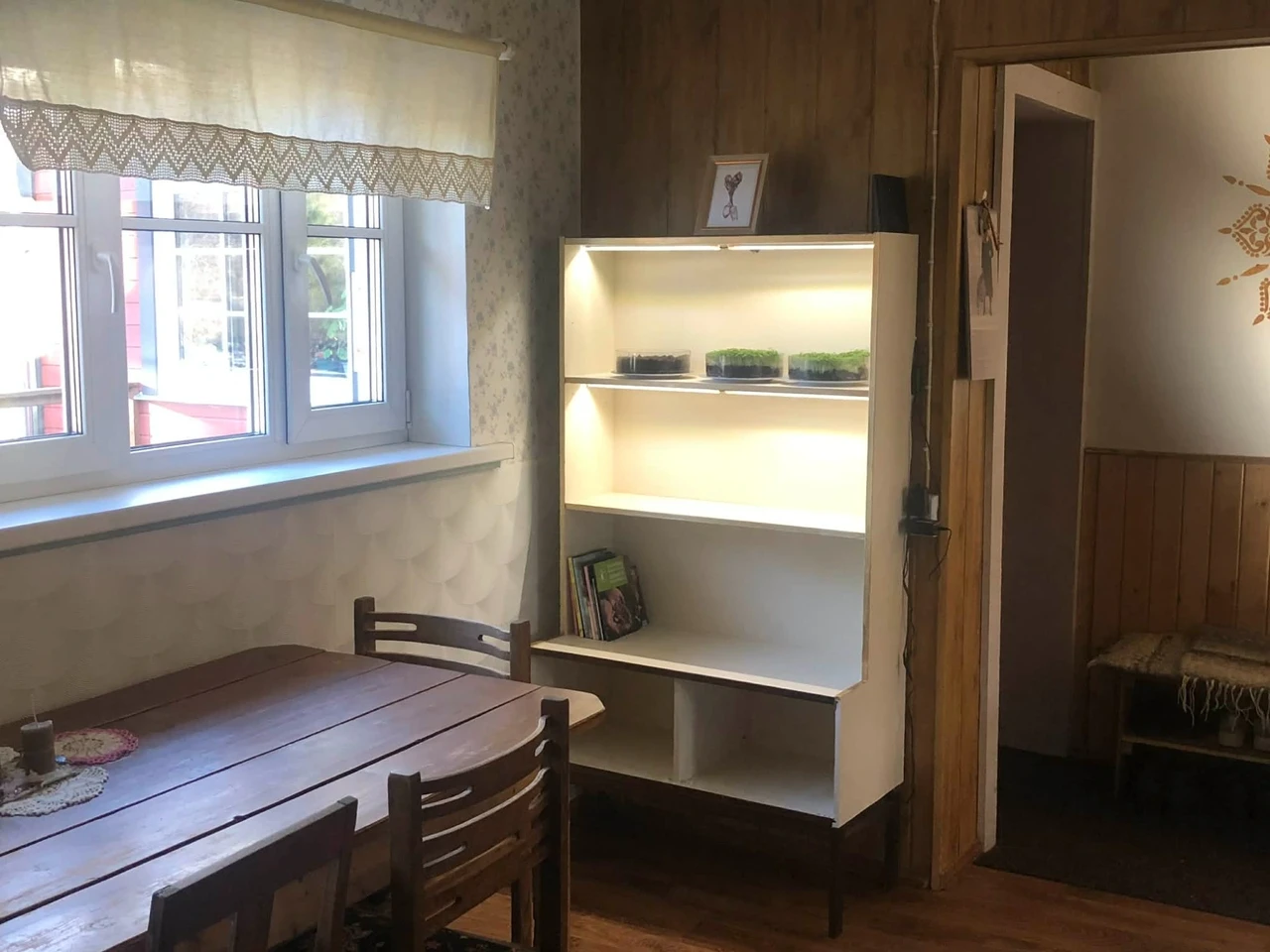 Päris rahul oma praeguse kasvatusnurga asukohaga veel pole, sest see on köögi tööpinnast eemal. Meeldiks rohkem, kui tõusmete kasvatusnurk oleks köögi tööpinna läheduses või kohakuti sellega. Aga seda saan muuta, kui tekib võimalus köögis natukes remonti teha ja interjööri muuta.